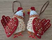 Beautifully hand crafted matching chickens. Every detail is sewn by hand and would look stunning on any tree or mantelpiece